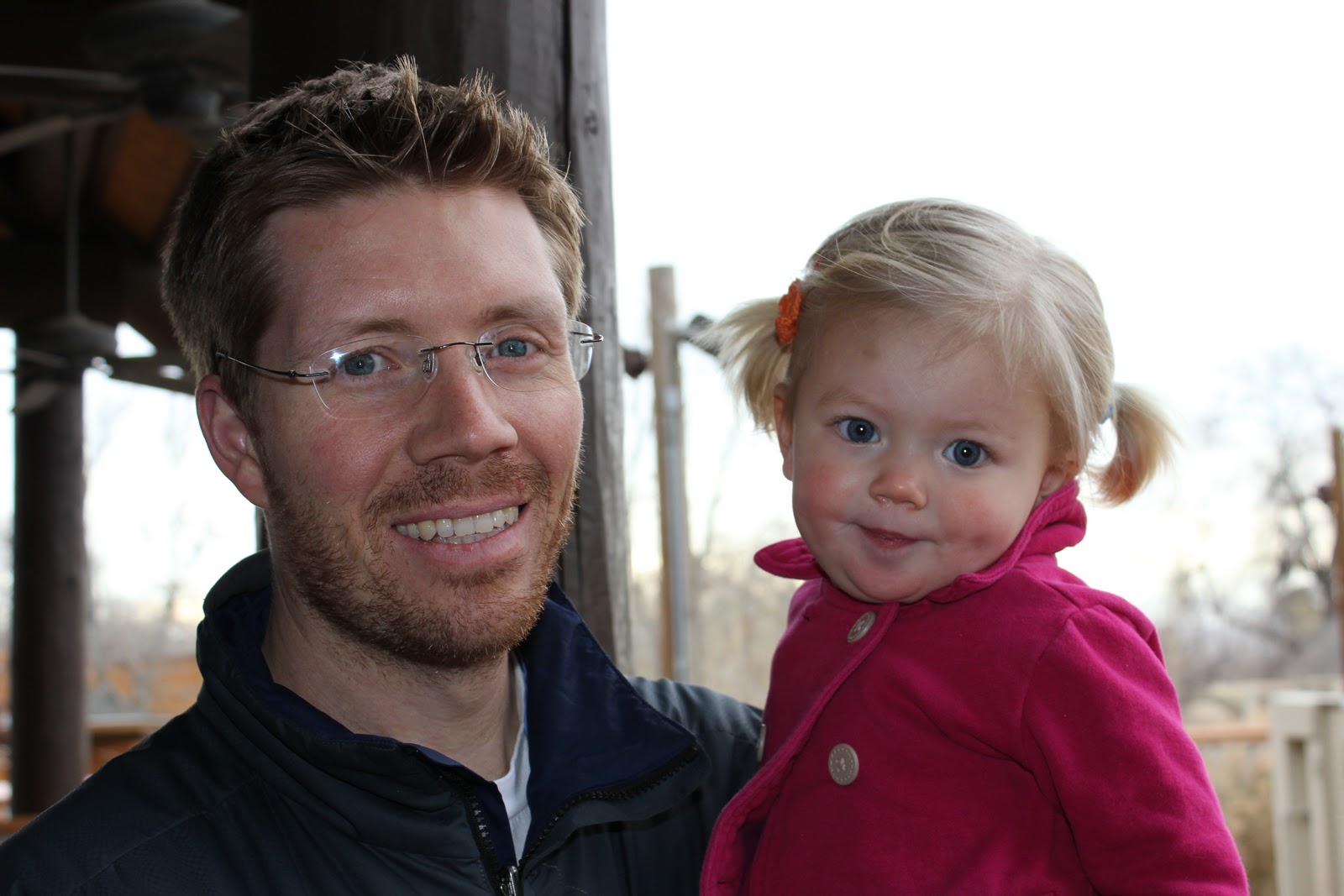 | Clementine hanging out with handsome bearded Daddy at the zoo. Look at those dimples! |